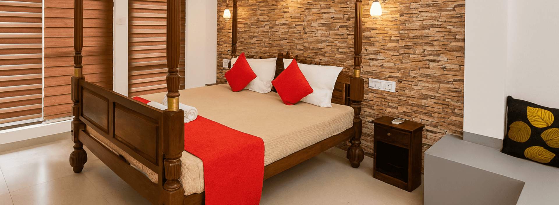Each room is furnished in a simple way with a king-sized bed, a